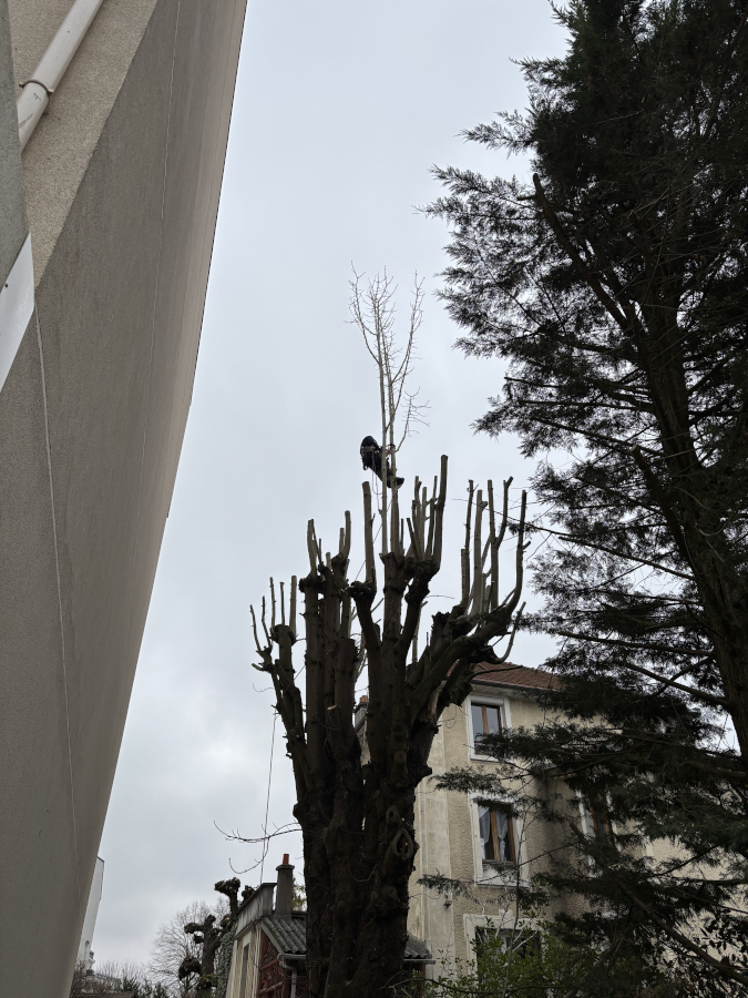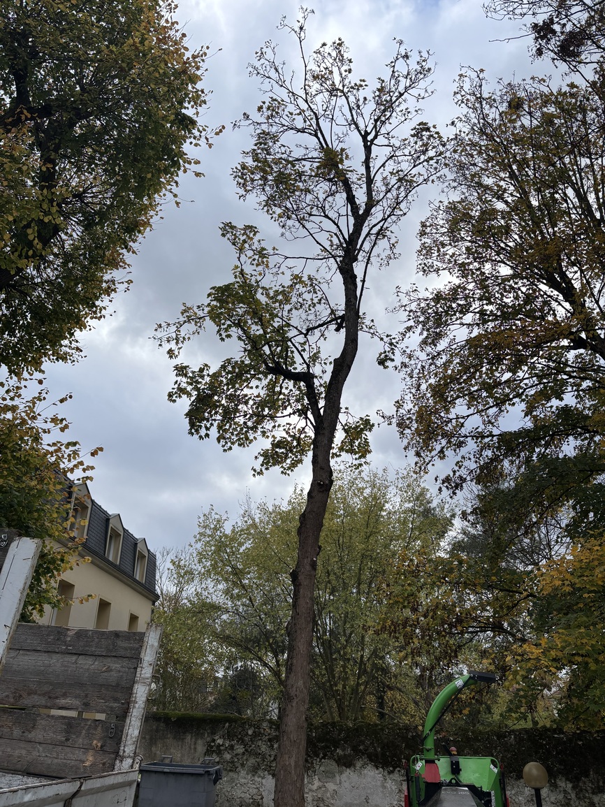 Élagage d’un robinier, abattage d’un cyprès proche de la Toiture
